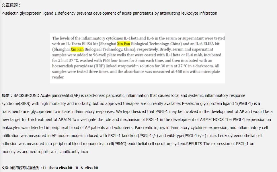 信帆生物:细胞因子类ELISA试剂盒文献上线