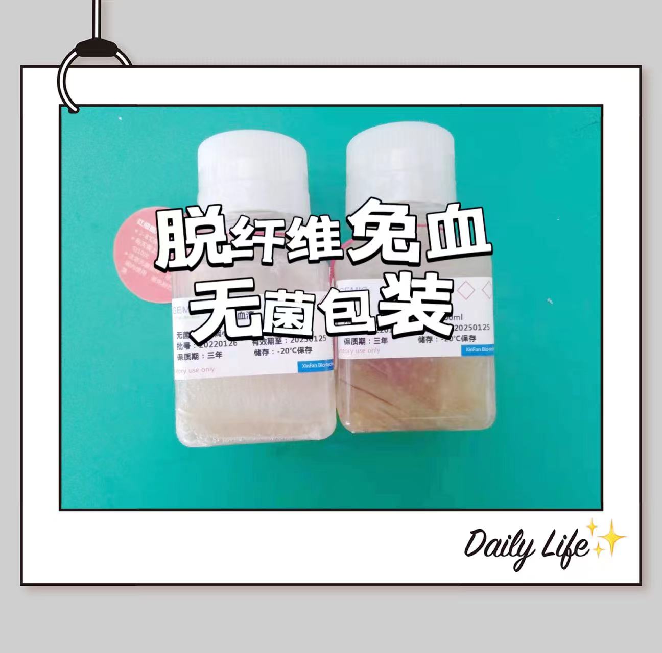 产品名称:脱纤维兔血(无菌 pet瓶装)