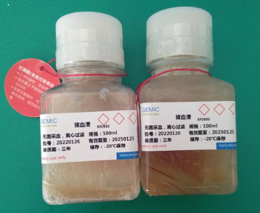 猪血清的制备过程包括采血、分离、过滤、灭活等步骤,最终得到的是一种无菌、无病毒、无支原体等污染的生物试剂。猪血清的成分包括蛋白质、氨基酸、矿物质、维生素等,其中富含大分子蛋白,低分子量的营养素,作为氨基酸、碳水化合物、维生素的额外来源。