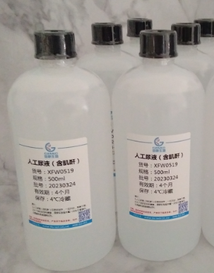 人工尿液(含肌酐)符合以下标准:ISO 3160-2、ISO 105-E04、ISO 12870、EN 1811:2011、EN6128:2011等,人工尿液(含肌酐)主要由氯化钙、氯化镁、氯化钠、硫酸钠、氯化钾、磷酸盐、氯化铵、尿素、肌酐等系列物质组成,pH值为4.7,与真实的人体尿液相似度大于99.5%,可用于检测人体接触物的使用寿命,对产品的耐尿液腐蚀的模拟试验。