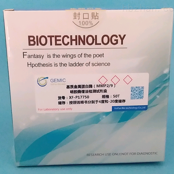 基质金属蛋白酶(mmp2/9)试剂盒适用: 检测 MMP-2、MMP-9 酶谱及活性(Detect MMP2 and MMP9 as low as 1 nM)。